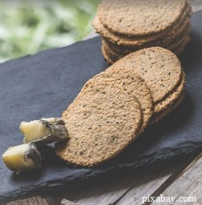 Dissolve 1 ½ tbsp. salt in 1 cup water. Mix into 5 cups flour. Knead into a dough and roll out to 1/3-inch thickness. Cut into 3-inch squares and pierce each with a fork or whatever is available.